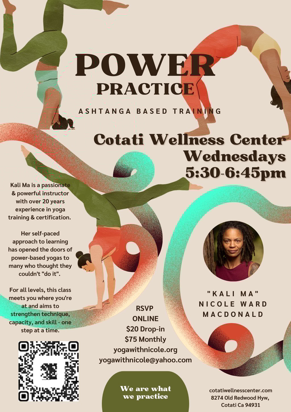 A self-paced power class that meets you where you're at, helping you to develop the tools & techniques needed to progress along the path. Kali Ma offers modifications & advancements in this Primary Series "prep" class for all levels.