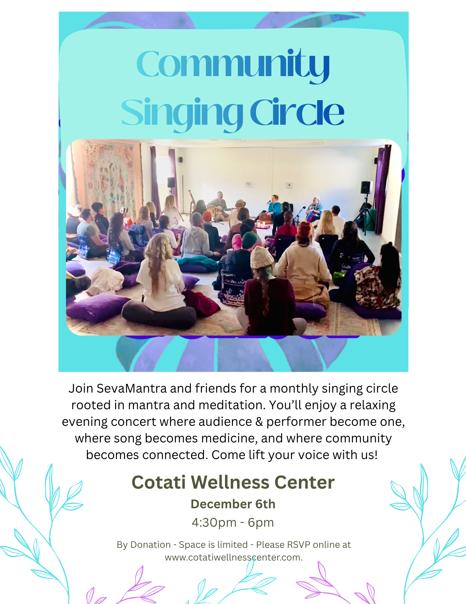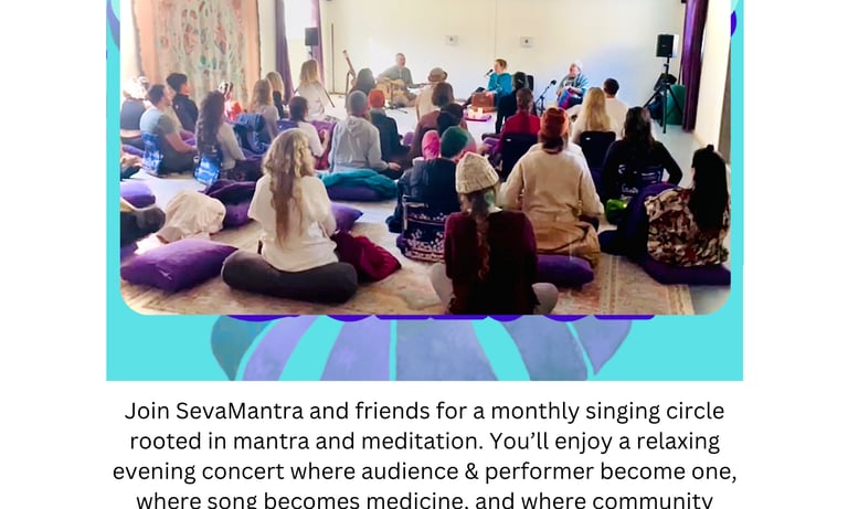 Be swept away by mantra, music, and the magic of SevaMantra - taking the listener deep inside to connect with their heart, their music is truly medicine. Our monthly circle is family friendly, inspiring for all ages, & by donation!!